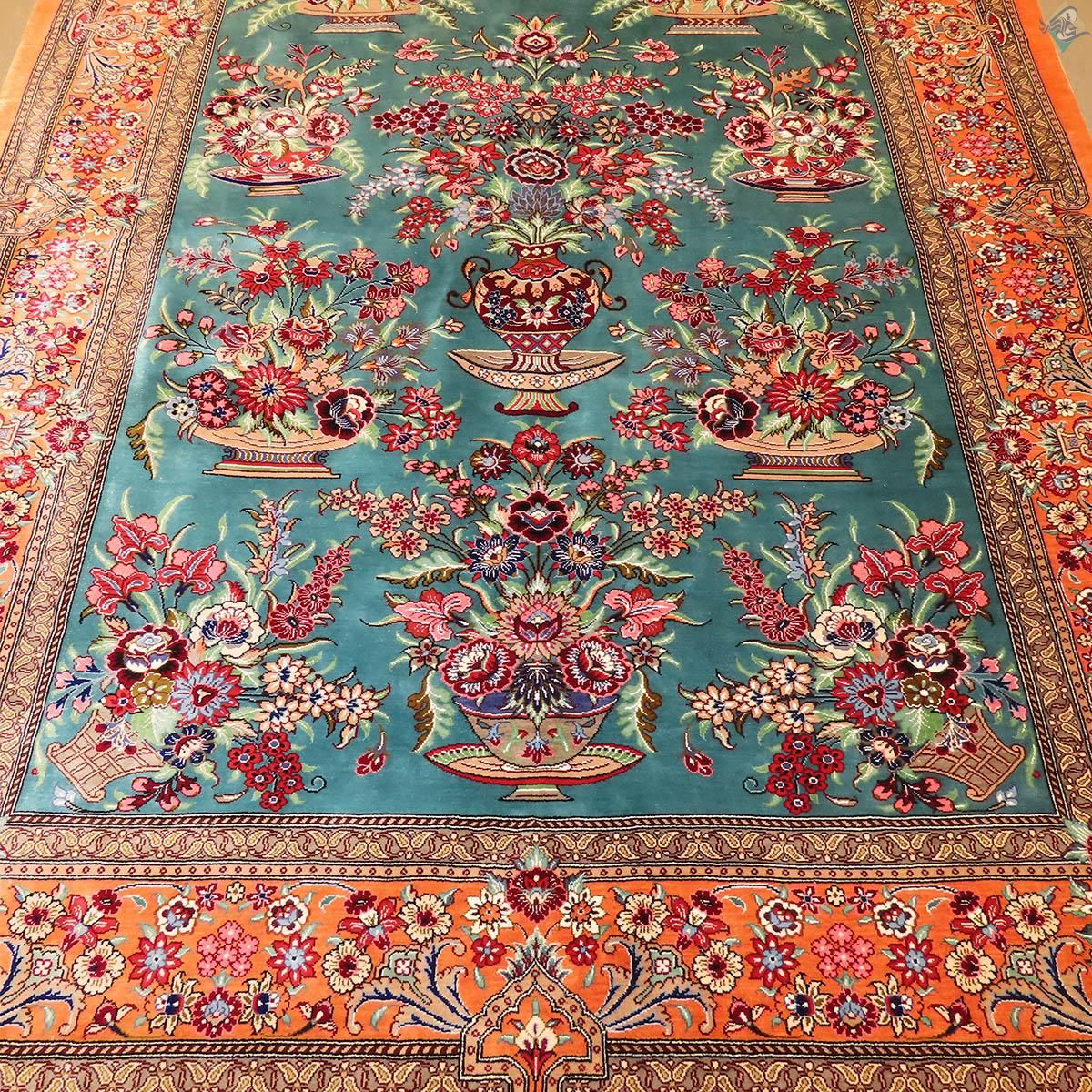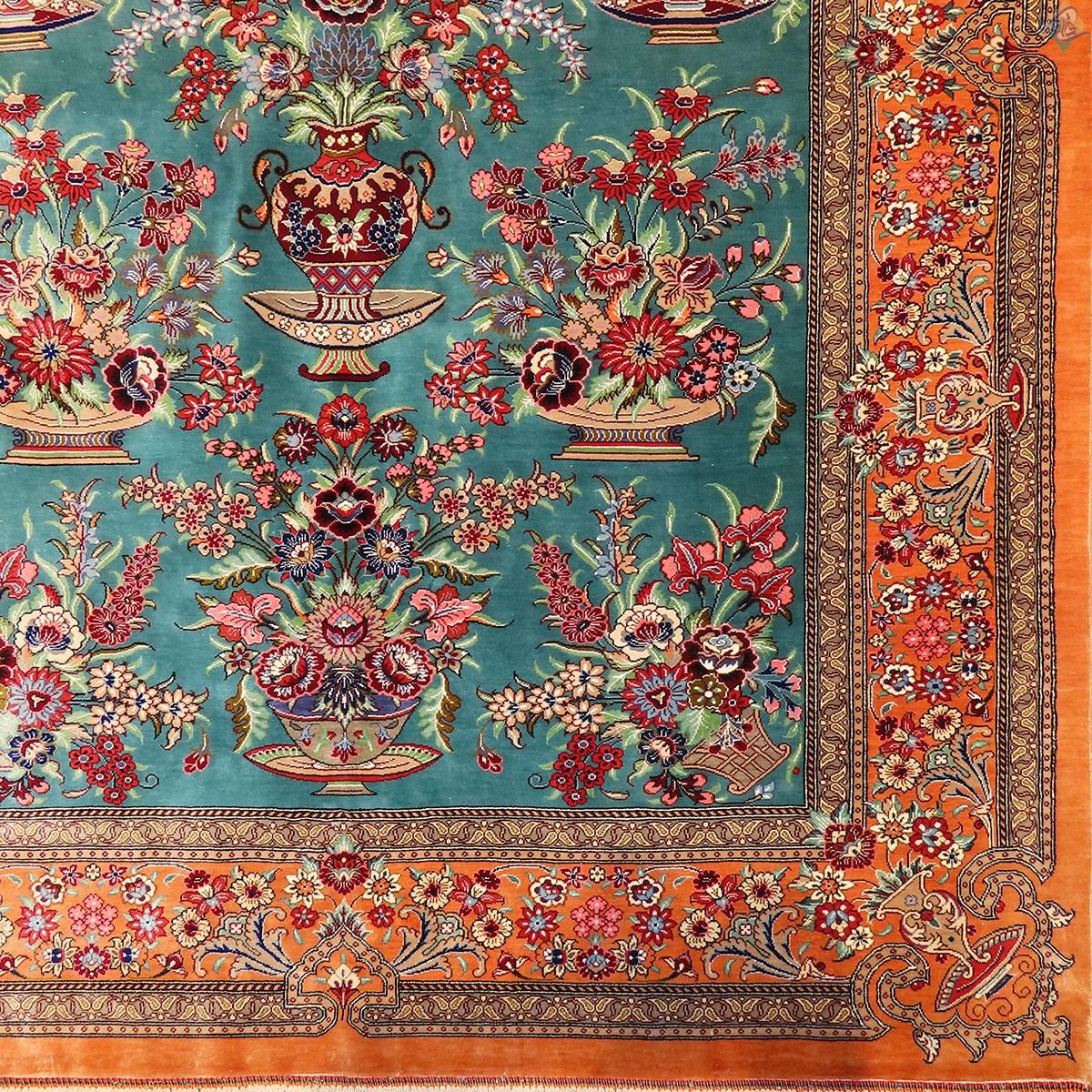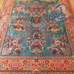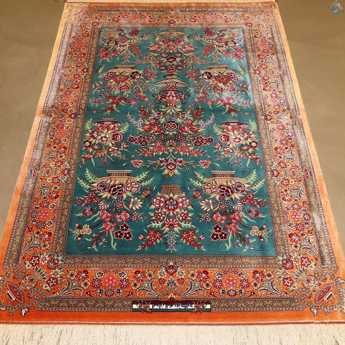 ذرع و نیم دستباف تمام ابریشم قم طرح گلدانی تولیدی روزگرد هشتاد رج