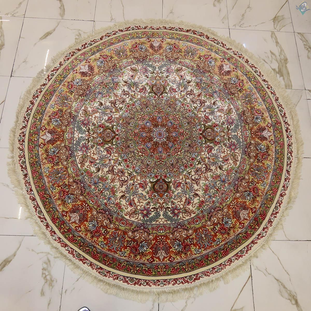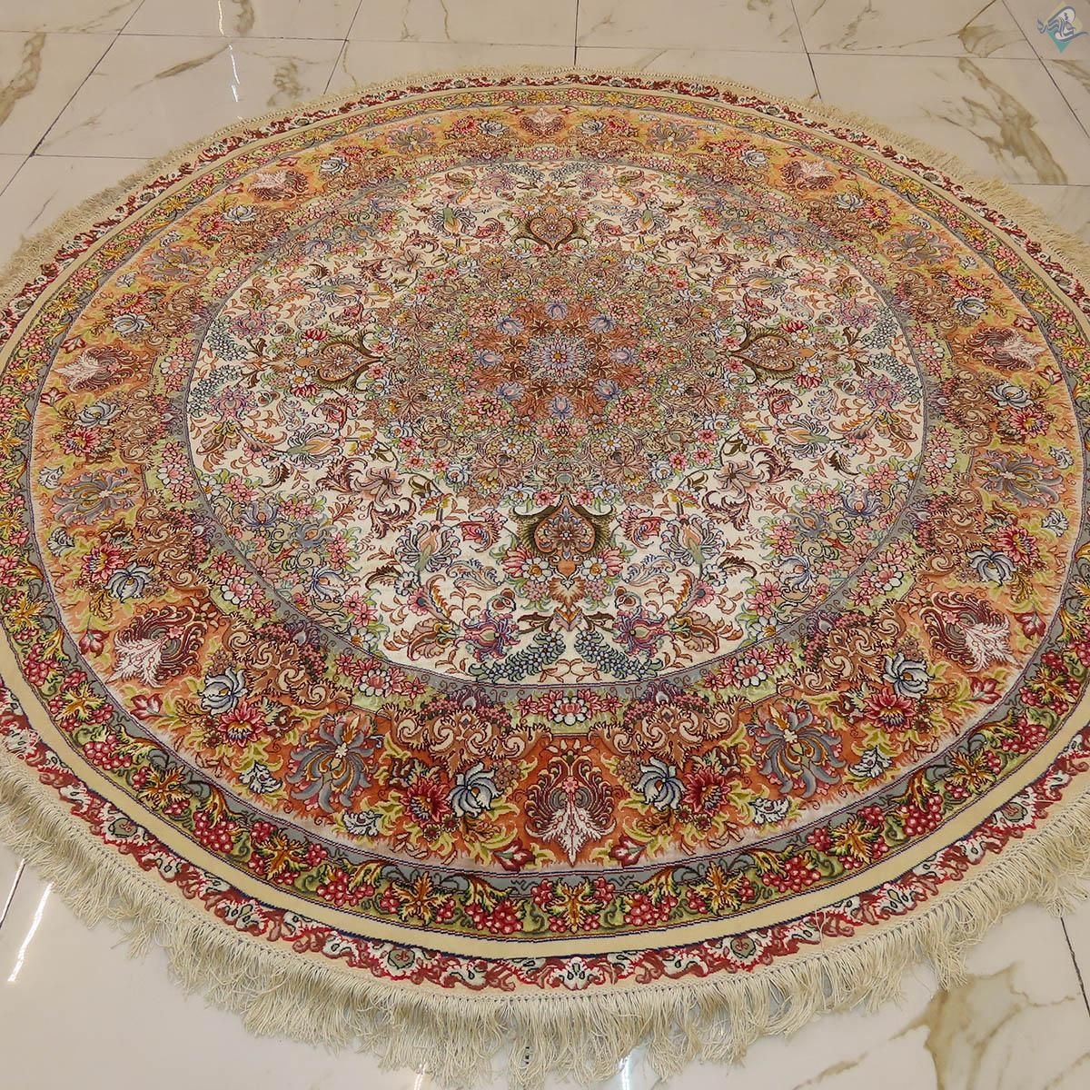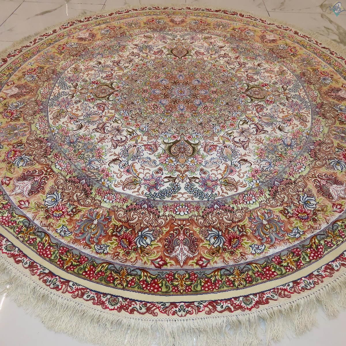 فرش دستباف تبریز دایره قطر دو متر طرح جدید خطیبی کف ابریشم شصت رج