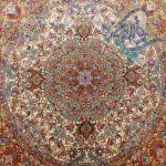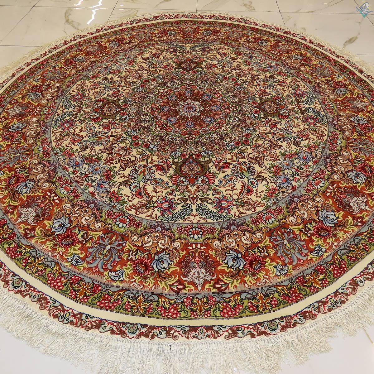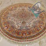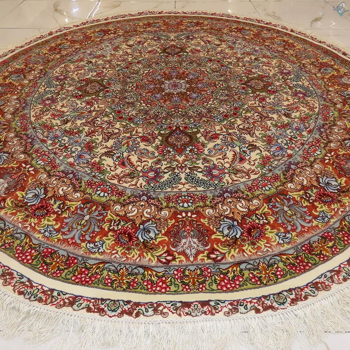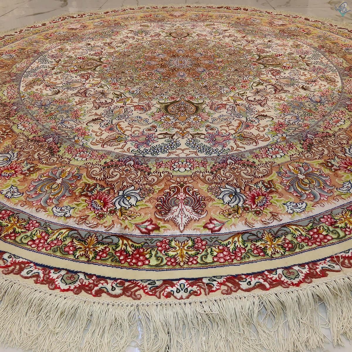 فرش دستباف تبریز دایره قطر دو متر طرح جدید خطیبی کف ابریشم شصت رج