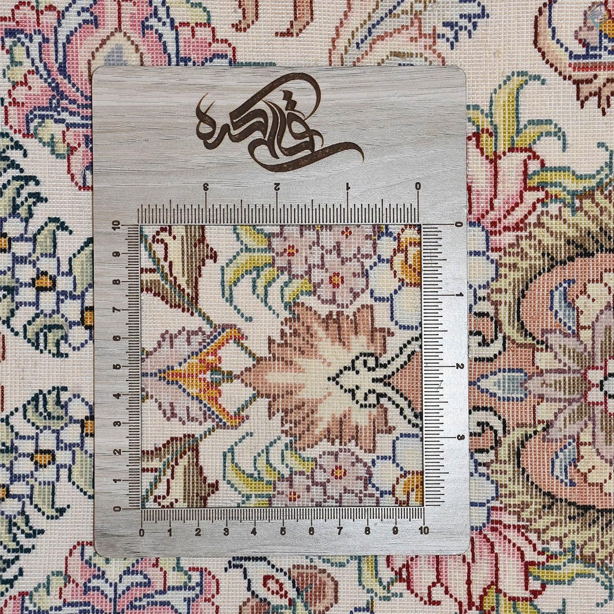 قالی دستباف تبریز گرد قطر دو متر نقشه جدید خطیبی کف متن و کف حاشیه و ریشه و گل ابریشم شصت رج واقعی