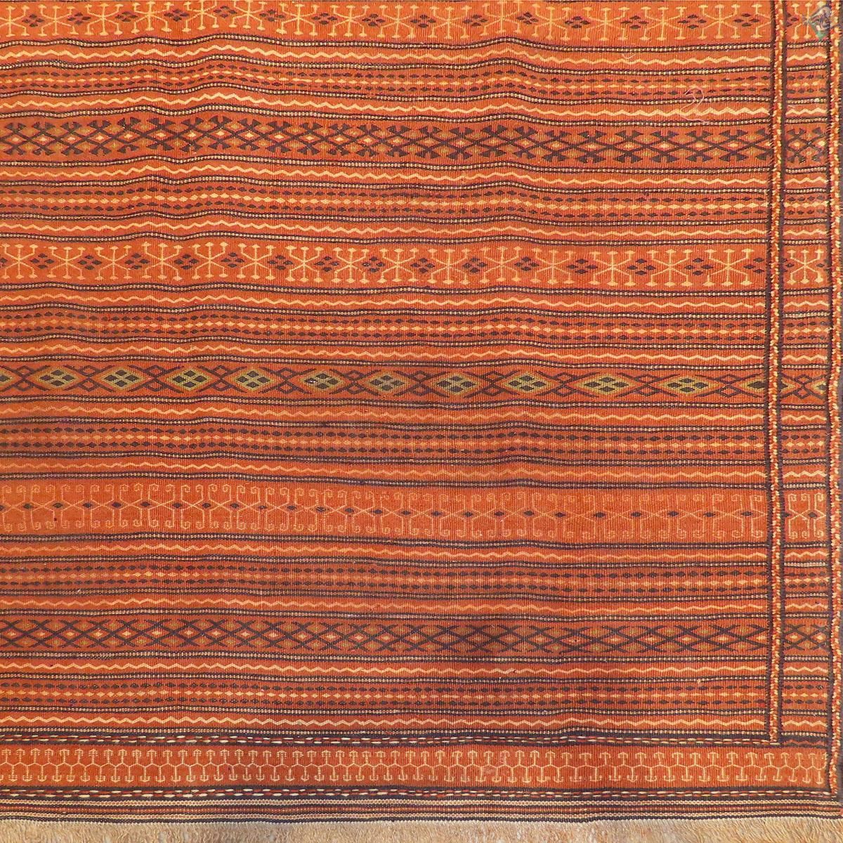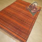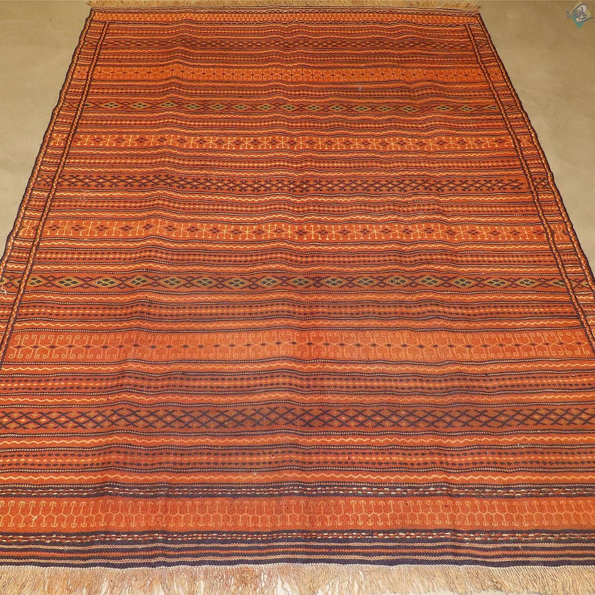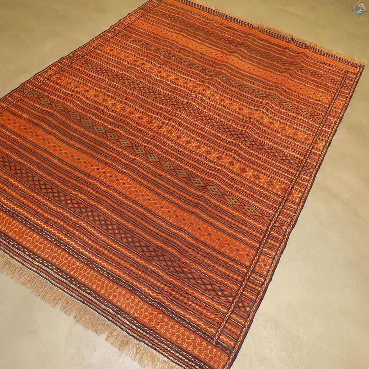 گلیم دستباف سایز قالیچه یعنی سه متر مربع با مصالح پشم و رنگ گیاهی و نقشه ی ذهنی باف محرمات مناسب برای دکوراسیون های امروزی و هماهنگ با سلیقه ی جوانان